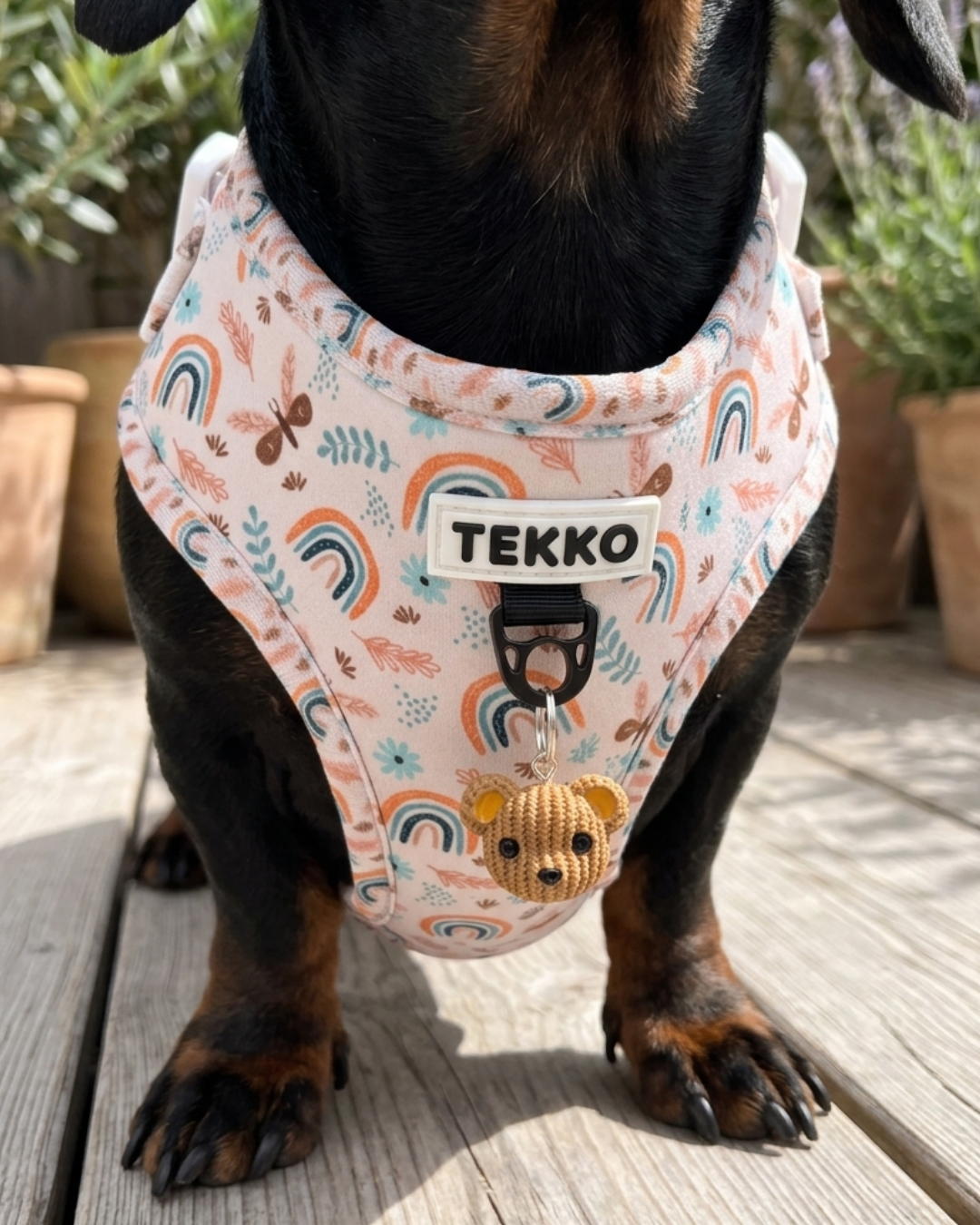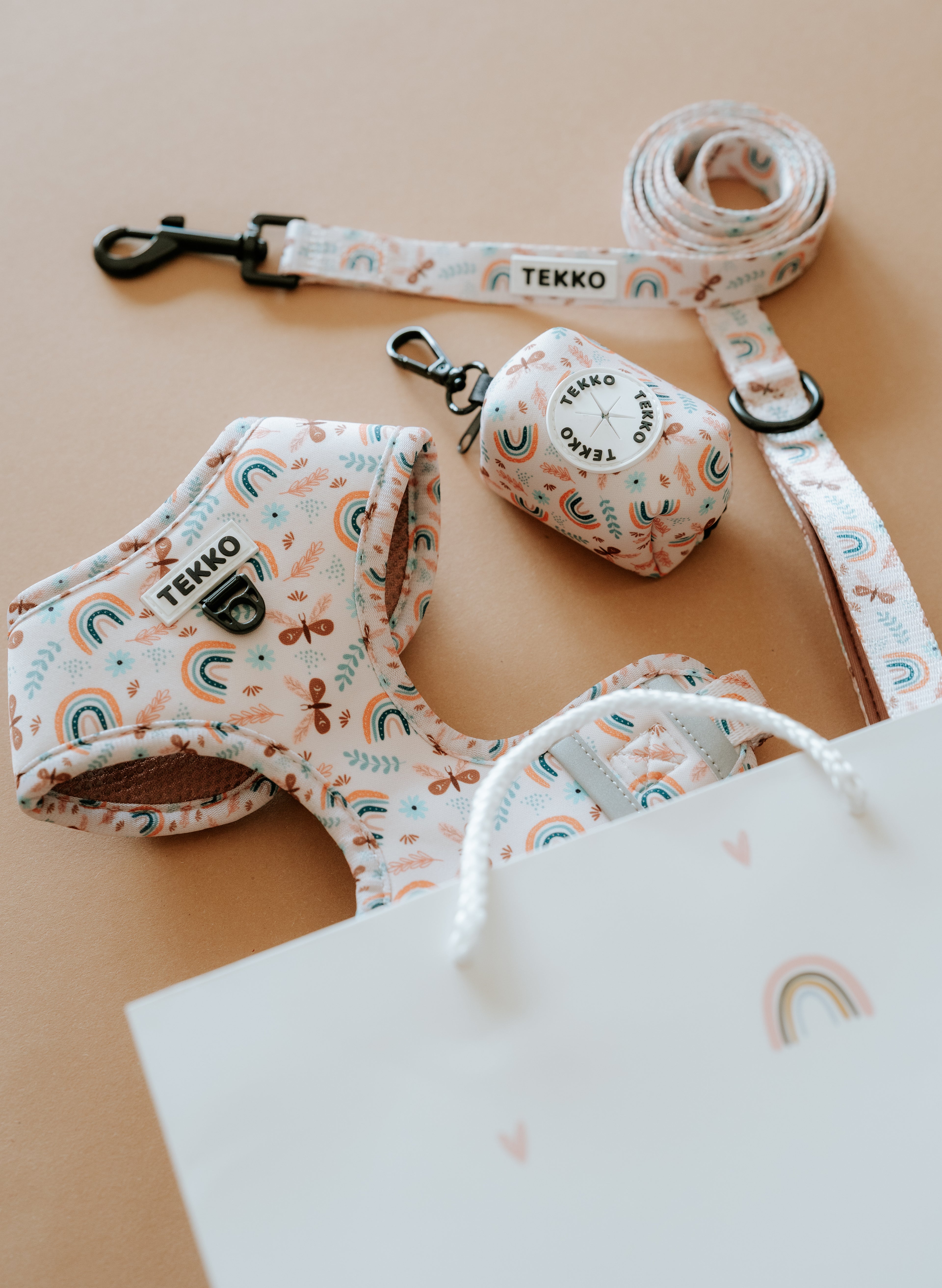 Así nace Tekko, una marca pequeña, hecha con corazón y atención al detalle en la que diseñamos arneses y accesorios cómodos, seguros y bonitos para que tu perro y tú disfrutéis de cada paseo juntos.
